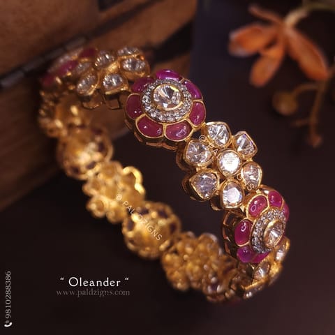 Abhushan Antique 2-6" Size Moissanite Polki Bangle (Single)