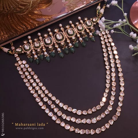 Param Sundari Lada Moissanite Polki Necklace Set Combo