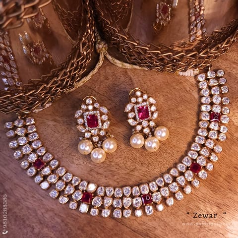Jharna Albina Moissanite Polki Necklace Set