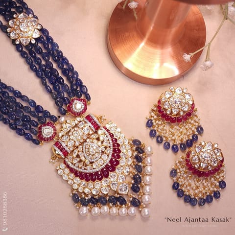 Ruby Zaffar Moissanite Polki Long Necklace Set