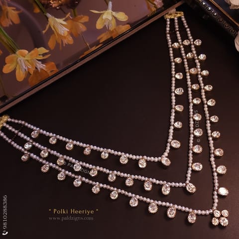 Mutiyaari bel Moissanite Polki Necklace And Hair Jewel