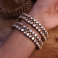 Abhushan Antique 2-2" Size Moissanite Polki Bangles (Pair)