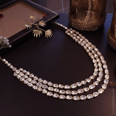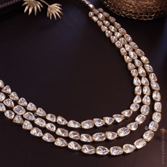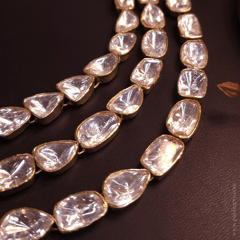 Stone: It has an Excellent Lustre of Moissanite Polkis which are the best substitute for Real Polkis. These polkis have Silver Daak at the Backside and are set in an open setting with closed jaali back setting.