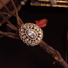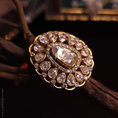 Stones: Moissanite Diamond Polkis with excellent lustre & shine. It has Silver Daak at the backside and is set in an open setting.