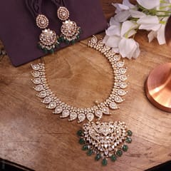 Gorgeous and Royal looking Moissanite Detachable And Reversible Necklace Set for Bridal look