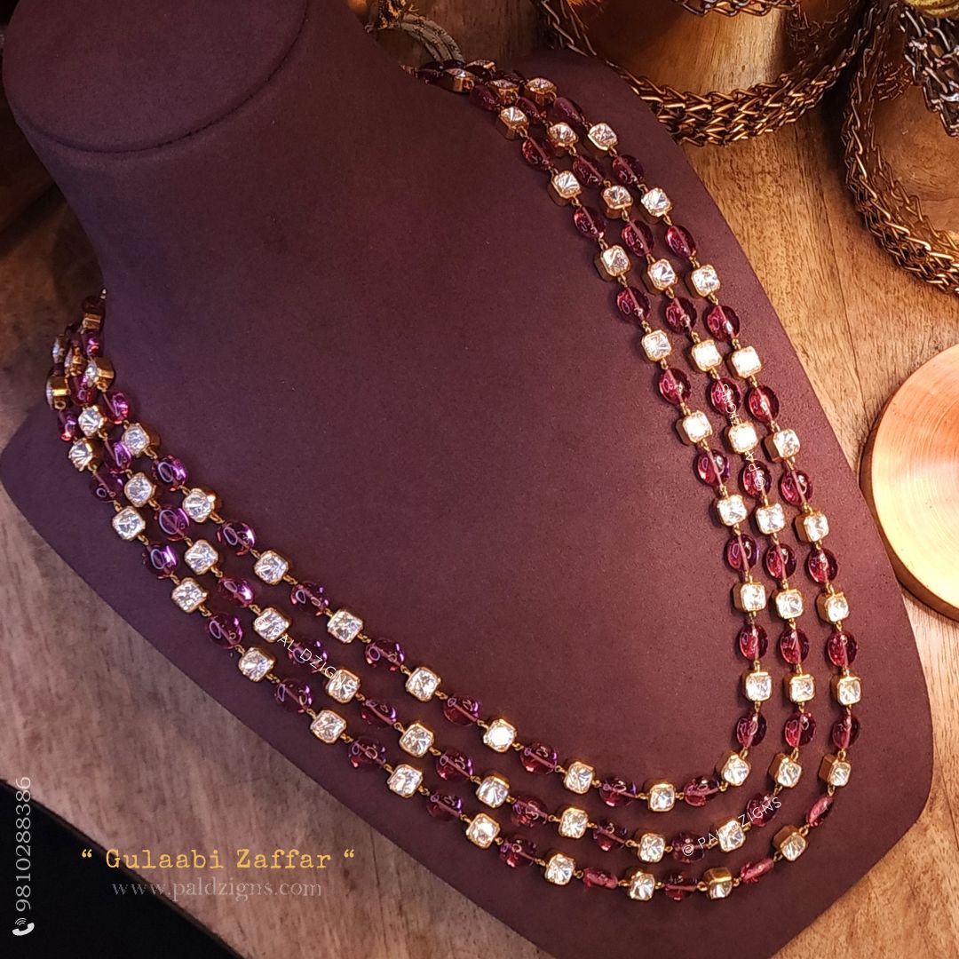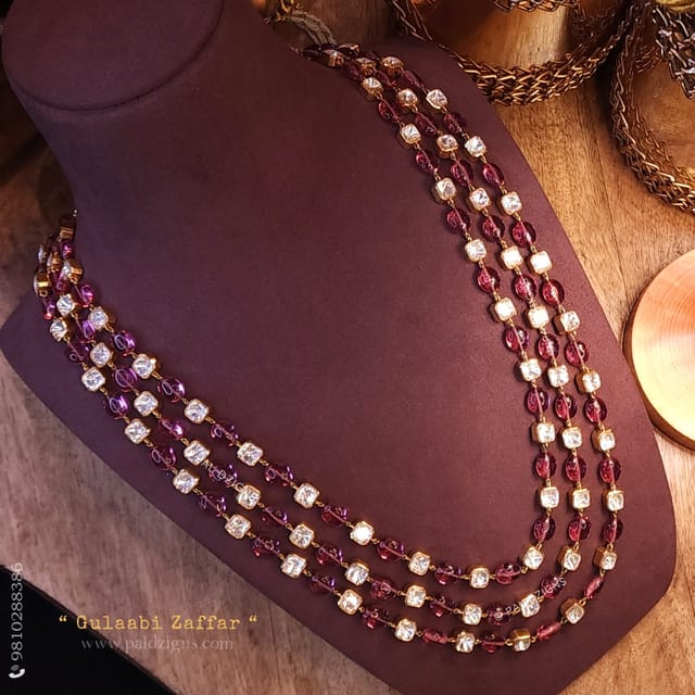 Gulabi Zaffar 3 layer Moissanite Polki Necklace