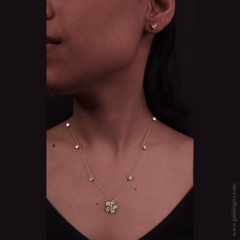 IMPORTANT: Pictures uploaded on our website are Phone Camera Clicked & No beauty edits are done except Watermarking and Design Name text. Stone's colour and Gold Rhodium colour may look a little different in every new piece. There is no Standard One tone which is given every time a new piece is manufactured.