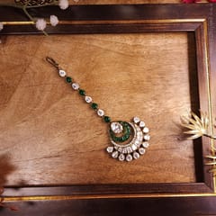 Hari Matki Moissanite Polki Maangtikka