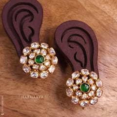 Stones: It has an Excellent Lustre of Moissanite Polkis which are the best substitute for Real Polkis. These polkis have Silver Daak at the Backside and are set in an open setting with closed back.