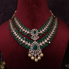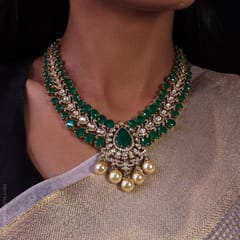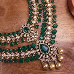 Gorgeous looking Moissanite Polki Detachable Long Necklace for Wedding related functions.
