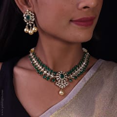 Stone: It has an Excellent Lustre of Moissanite Polkis which are the best substitute for Real Polkis. These polkis have Silver Daak at the Backside and are set in an open setting.