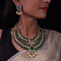 Hiramani Detachable Moissanite Polki Long Necklace Set
