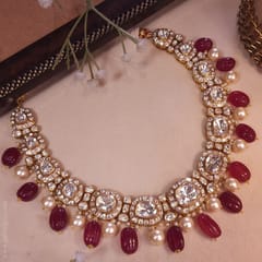 Laal Sufiaana Detachable Moissanite Polki Necklace Set