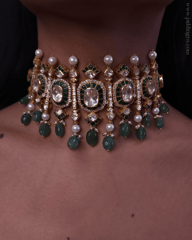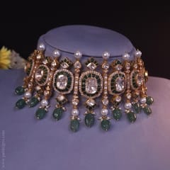 Colour Stone(Choker): Emerald looking semi-precious stone.
