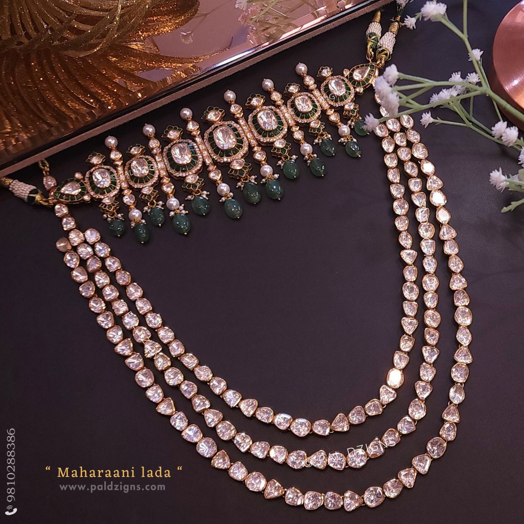 Gorgeous and Royal looking Moissanite Polki Necklace set for Bridal look