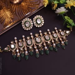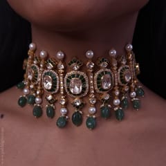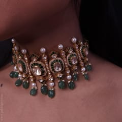 Gorgeous and Royal looking Moissanite Polki Choker set for Bridal look