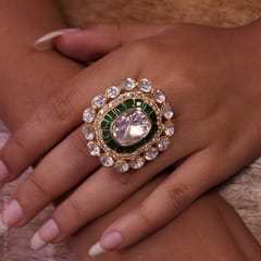 Gorgeous and Royal looking Moissanite Polki Ring for Bridal look