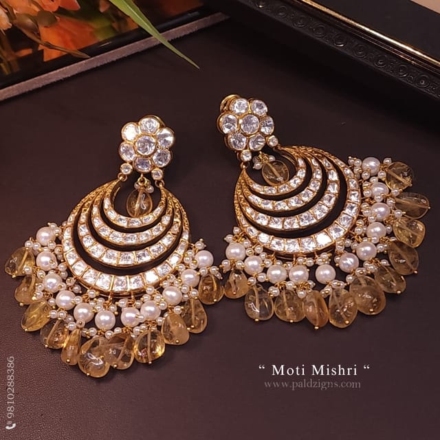 Moti Mishri Moissanite Polki Chaandbaali
