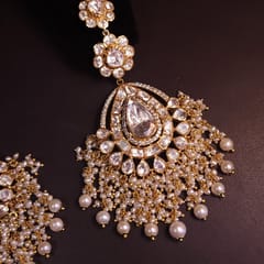 Stones: It has an Excellent Lustre of Moissanite Polkis which are the best substitute for Real Polkis. These polkis have Silver Daak at the Backside and are set in an open setting.
