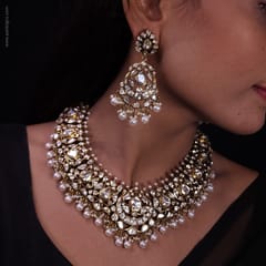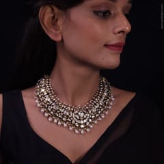 Moti Nawaabi Antique Moissanite Polki Necklace Set