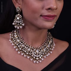 Gorgeous and Royal looking Moissanite Polki Necklace Set for Bridal look