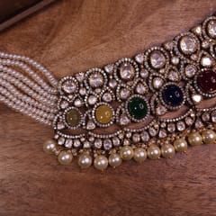 Gorgeous looking Moissanite Polki Choker Set for Wedding related functions.