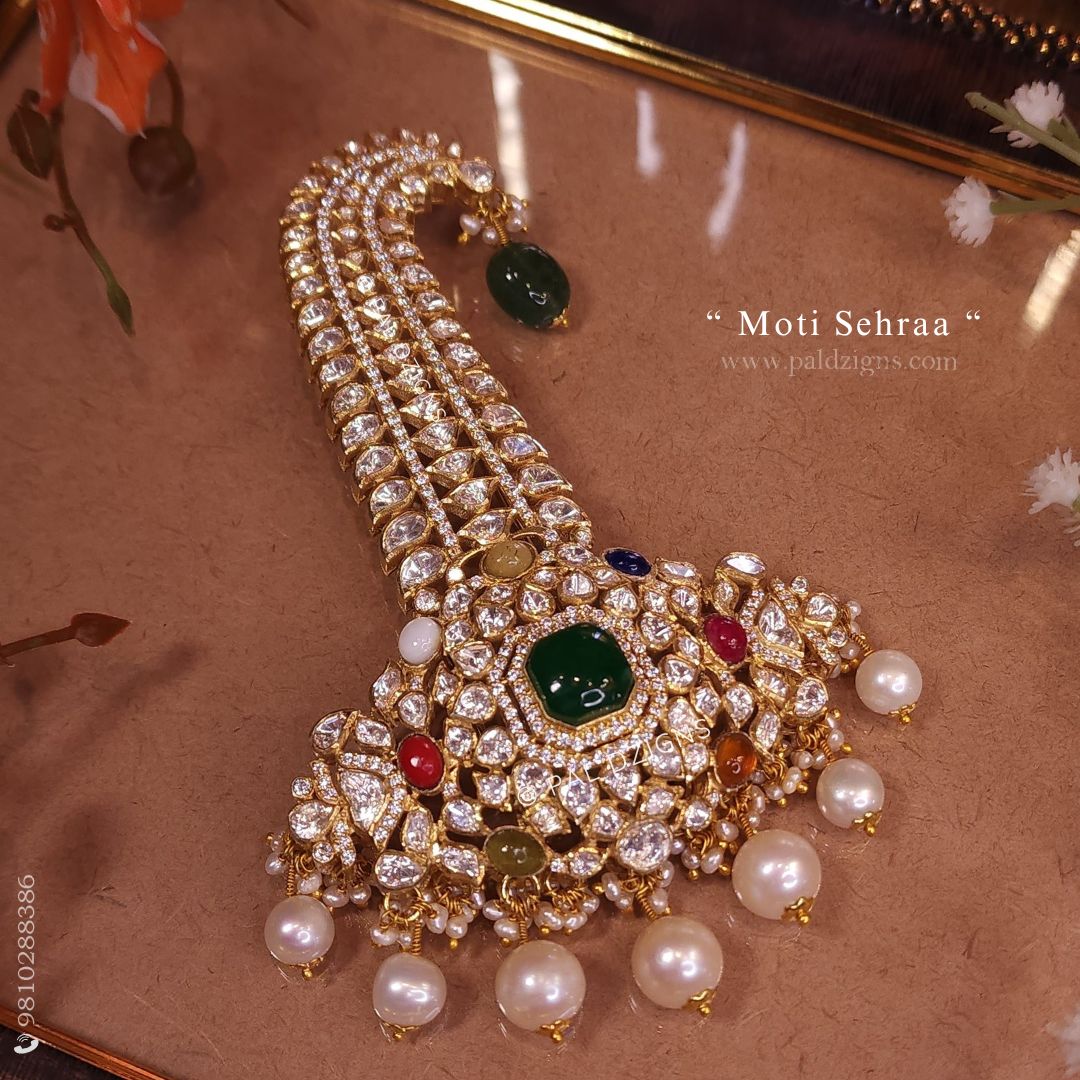 Gorgeous and Royal looking Moissanite Polki Kalgi for a Groom Look.