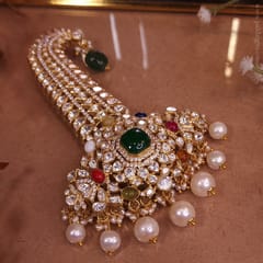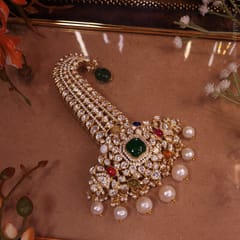 Stone: It has an Excellent Lustre of Moissanite Polkis which are the best substitute for Real Polkis. These polkis have Silver Daak at the Backside and are set in an open setting.