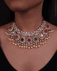 Gorgeous looking Moissanite Polki Necklace Set for Wedding related functions.