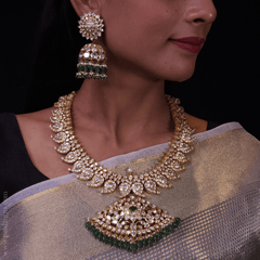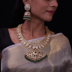 Gorgeous and Royal looking Moissanite Detachable Necklace Set for Bridal look