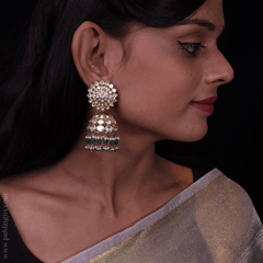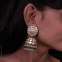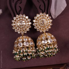 Stone: It has an Excellent Luster of Moissanite Polkis which are the best substitute for Real Polkis. These polkis have Silver Daak at the Backside and are set in an open setting.