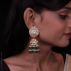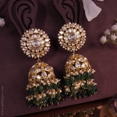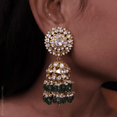 Stone: It has an Excellent Luster of Moissanite Polkis which are the best substitute for Real Polkis. These polkis have Silver Daak at the Backside and are set in an open setting.
