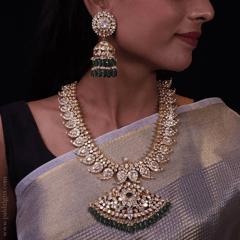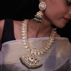 Nayan Kairi Jhum Detachable Moissanite Polki Necklace Set