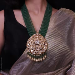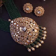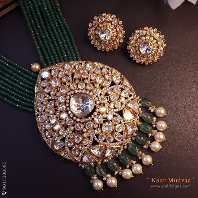 Noor Mudraa Gold Moissanite Polki Long Pendant Set