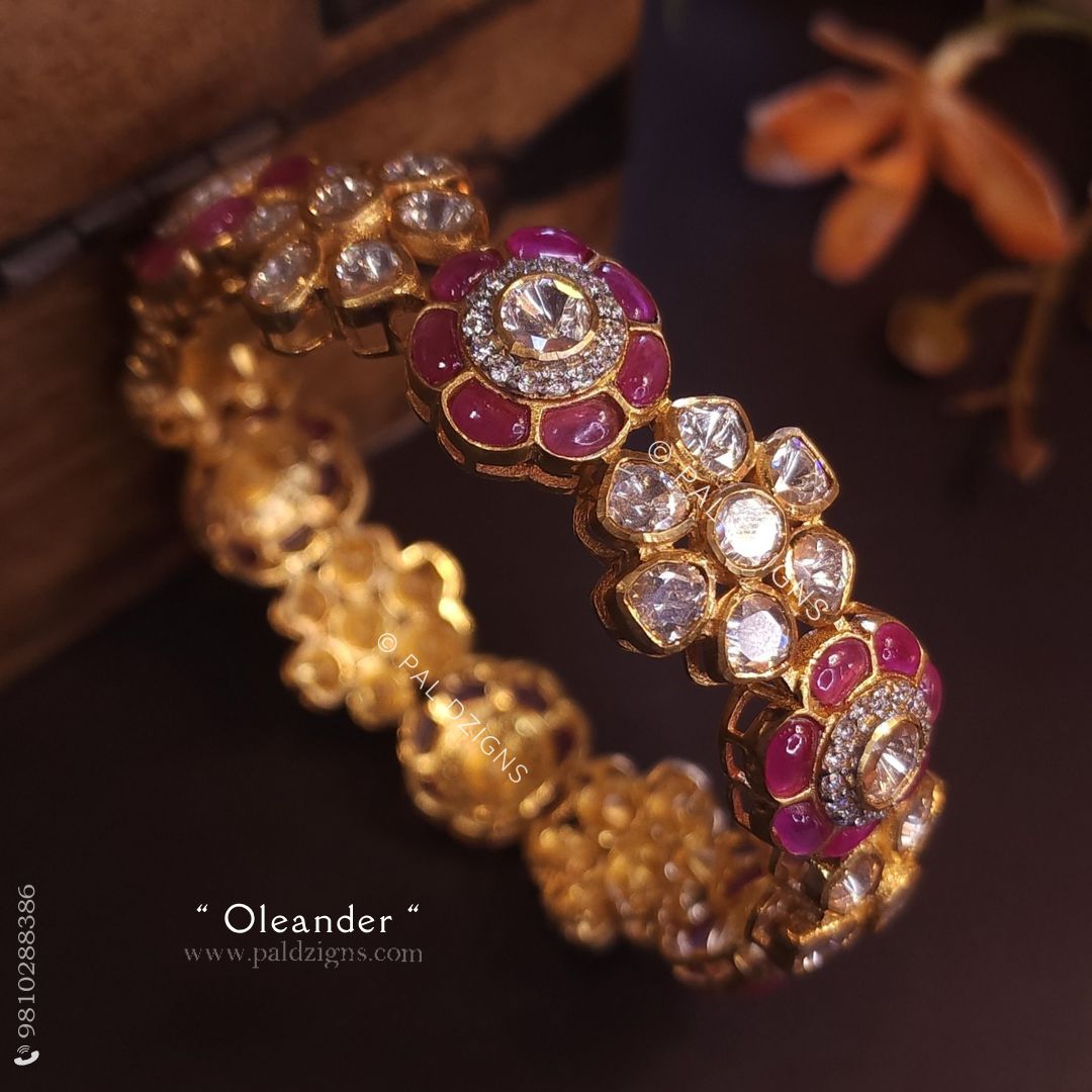 Oleander (2-4" size) Moissanite Polki Bangles (Single)