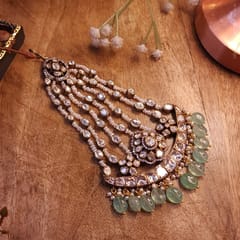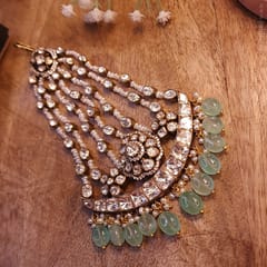 Stone: It has an Excellent Lustre of Moissanite Polkis which are the best substitute for Real Polkis. These polkis have Silver Daak at the Backside and are set in an open setting.