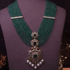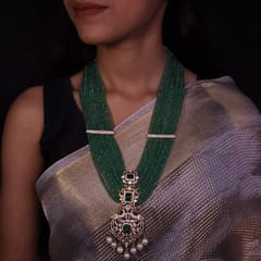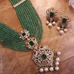Panna Raajbaala Moissanite Polki Pendant Set