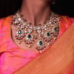 Gorgeous and Royal looking Moissanite Necklace Combo for Bridal look