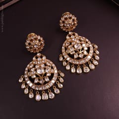 Beautiful and Royal Chaandbaali in Moissanite polkis for a Bridal look.