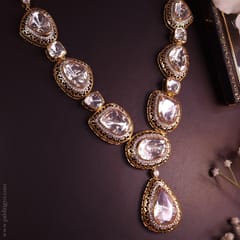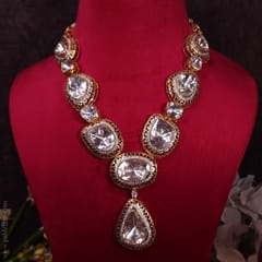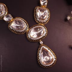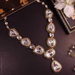 Stones: It has an Excellent Lustre of Moissanite Polkis which are the best substitute for Real Polkis. These polkis have Silver Daak at the Backside and are set in an open setting with closed jaali back.