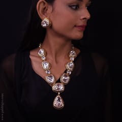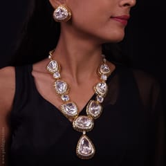 Polki Hussaina Moissanite Big Polki Necklace Set