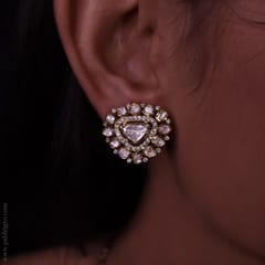 Stones: Moissanite Diamond Polkis with excellent lustre & shine. It has Silver Daak at the backside and is set in an open setting.