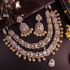 Gorgeous looking Moissanite Polki Necklace Set for Wedding-related functions.