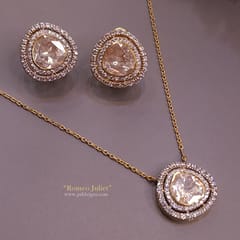 Beautiful and Royal looking Moissanite Polki Necklace Set.