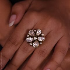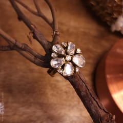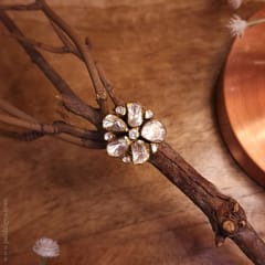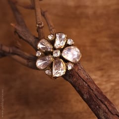 Stones: Moissanite Diamond Polkis with excellent lustre & shine. It has Silver Daak at the backside and is set in an open setting.