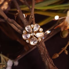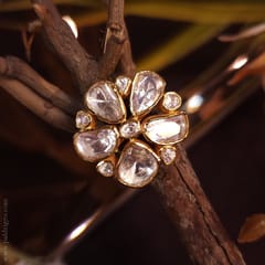 Stones: Moissanite Diamond Polkis with excellent lustre & shine. It has Silver Daak at the backside and is set in an open setting.