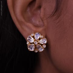 Stones: It has an Excellent Lustre of Moissanite Polkis which are the best substitute for Real Polkis. These polkis have Silver Daak at the Backside and are set in an open setting.