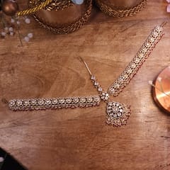 Beautiful and Royal Maathapati in Moissanite polkis for a Bridal look.