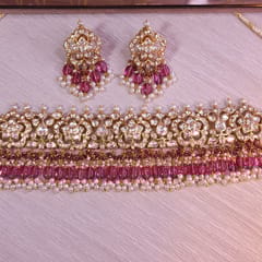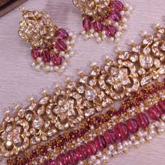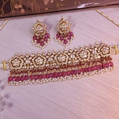 Real-looking polki jewellery Choker Set for Wedding related functions.