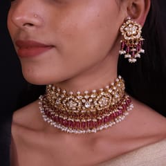 Making: The Choker Set is Uniquely Handcrafted by our Skilled Master Goldsmith Craftsman with detailed finishing like real jewellery.